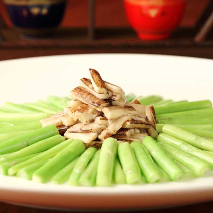 Sautéed Crab Claw with AsparagusSautéed thigh meat of crabs with asparagus integrates freshness of crab meat with the faint scent of asparagus, truly reflecting the essence of China’s cooking culture — “Harmony is Most Precious”. |